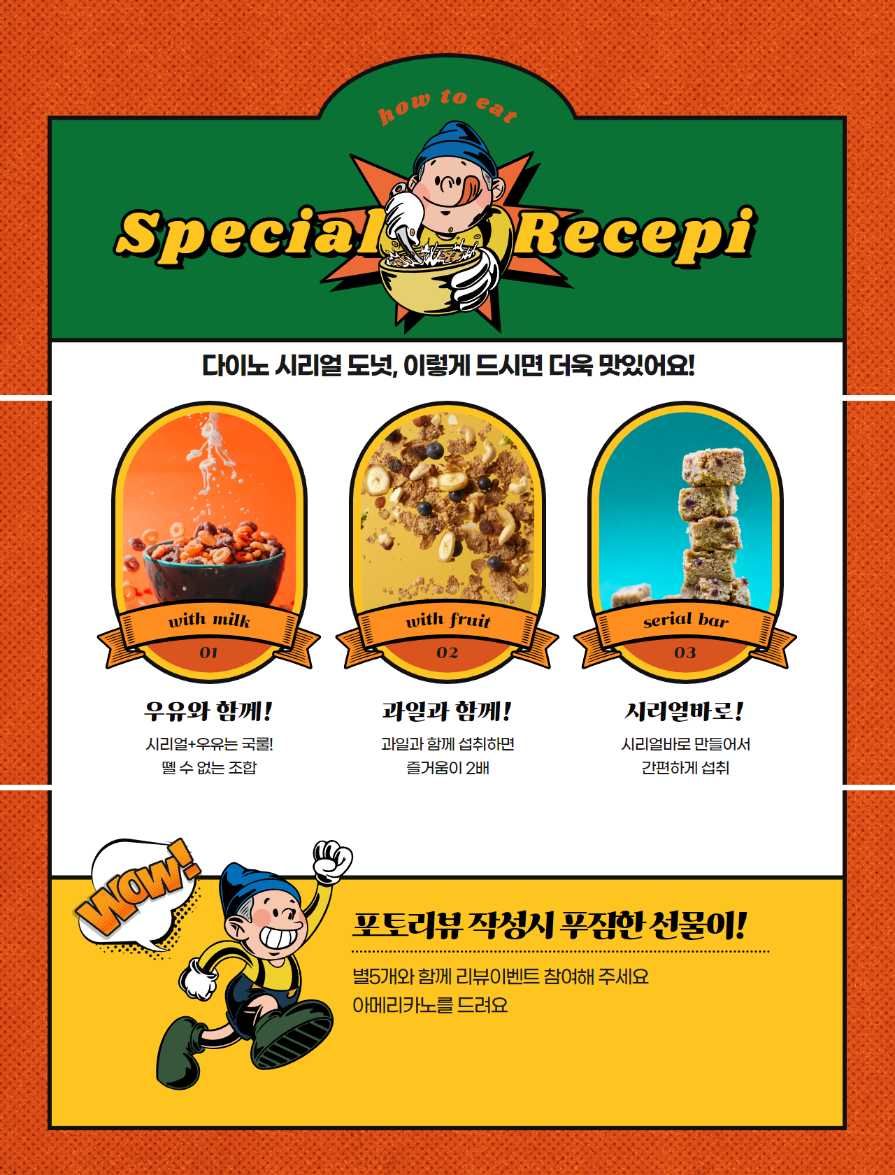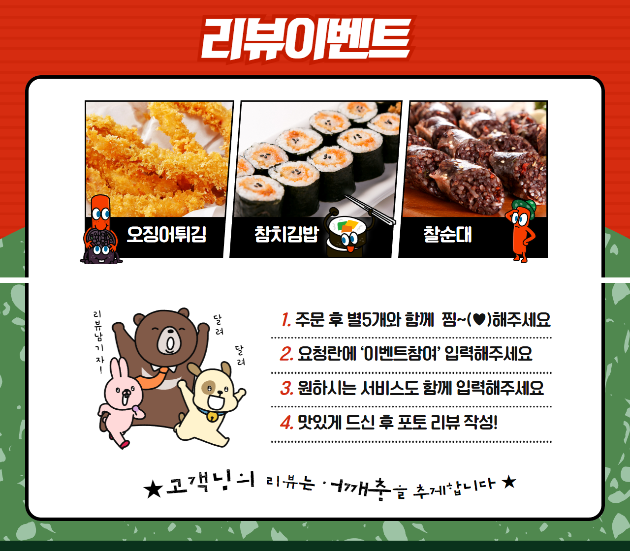 리뷰 이벤트등 꼭 필요한 디자인과 주문 요소를 사장님과 협의하여 작업해 드립니다.